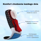 Konstrukcja wkładek pomaga redukować wstrząsy powstające podczas chodzenia, co zmniejsza obciążenie pięt i śródstopia.