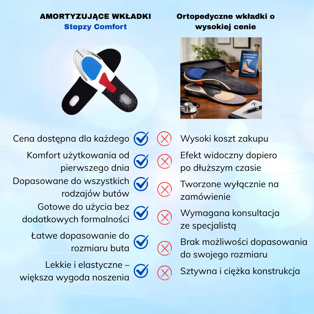 Jeśli spędzasz dużo czasu na nogach, Stepzy Comfort zostały stworzone, aby poprawić codzienny komfort chodzenia – bez zmiany butów i bez skomplikowanych rozwiązań.